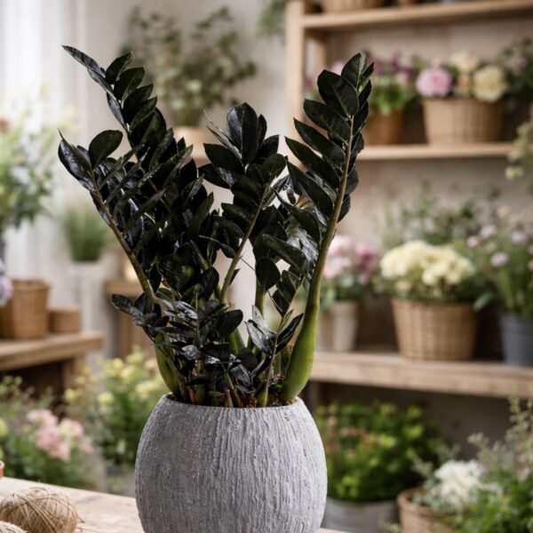 SYNETELLYA Siyah Yapraklı Zamia -Seramik Saksısında